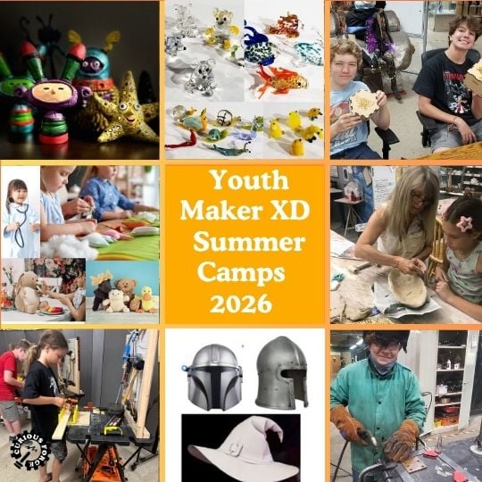 Our thoughtfully designed camps offer a diverse range of thrilling activities, including Blacksmithing, Welding, Skateboard Building, Jewelry Making, Ceramics, Woodworking, Laser Cutting, Giant Puppetry, Paper Mache, Glass Flameworking, and Fiber Arts. Each program is crafted to provide hands-on learning experiences that build self-confidence and ignite curiosity.
